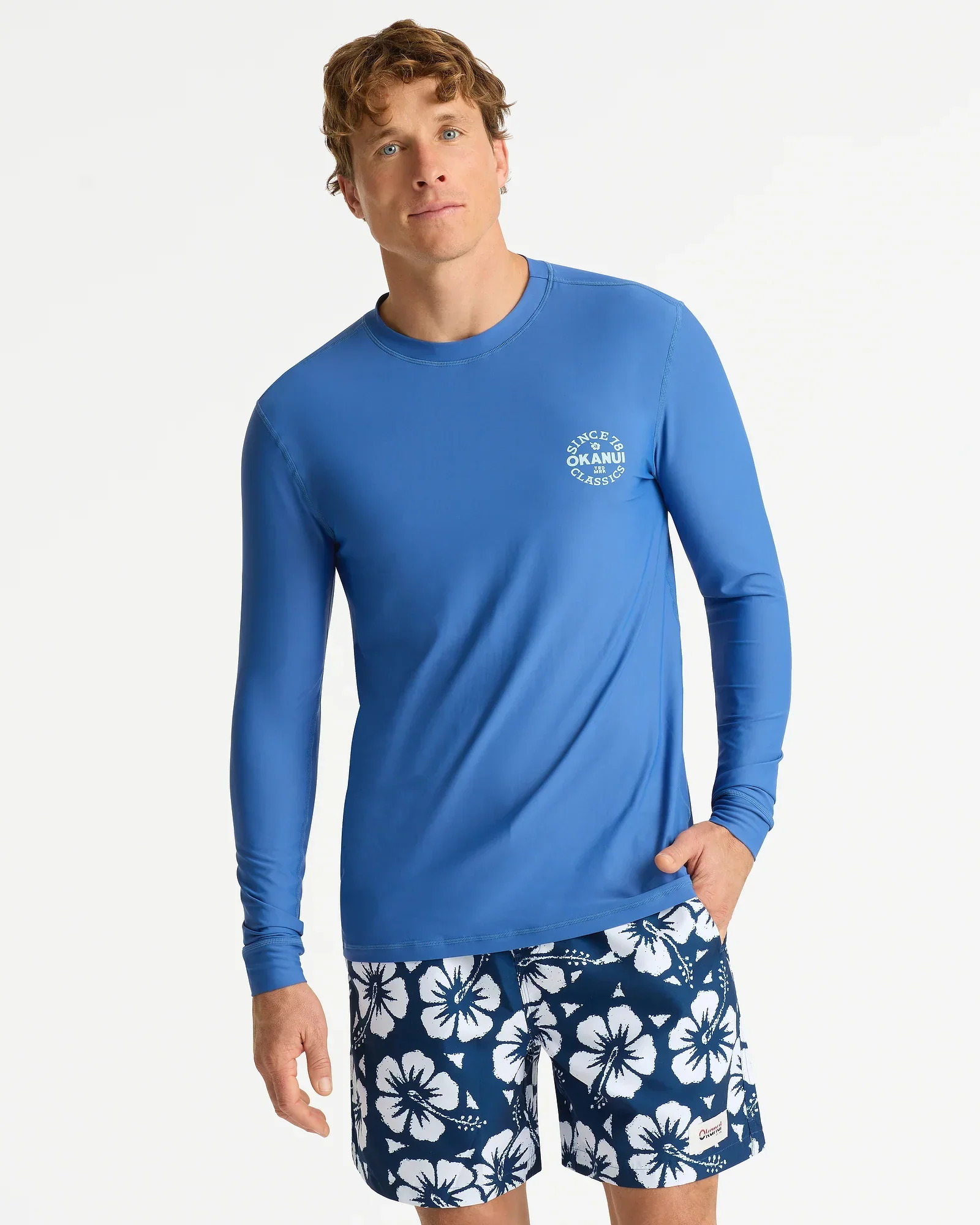 Look good and stay protected in this Okanui Ikon Long Sleeve Rashie in Indigo. With a UPF rating of 50+ and long sleeves to give you the ultimate in sun protection, this rashie is built for comfort with the same outstanding quality that Okanui is known for.