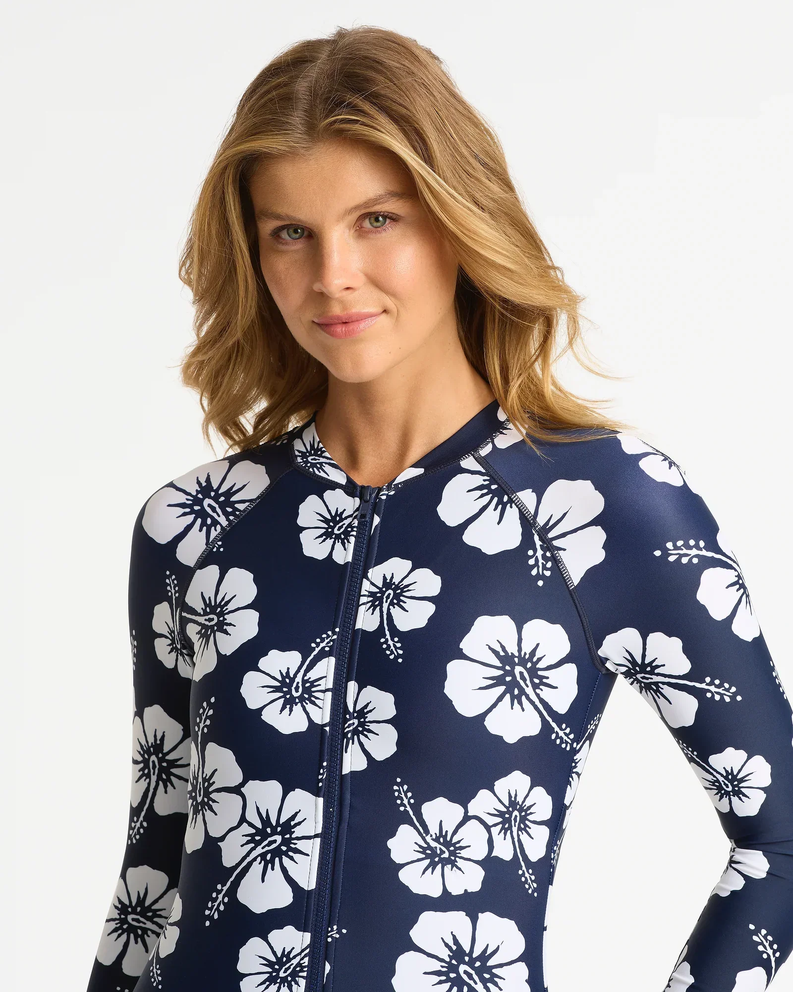 Womens Long Sleeve Swim Suit - Hibiscus Navy